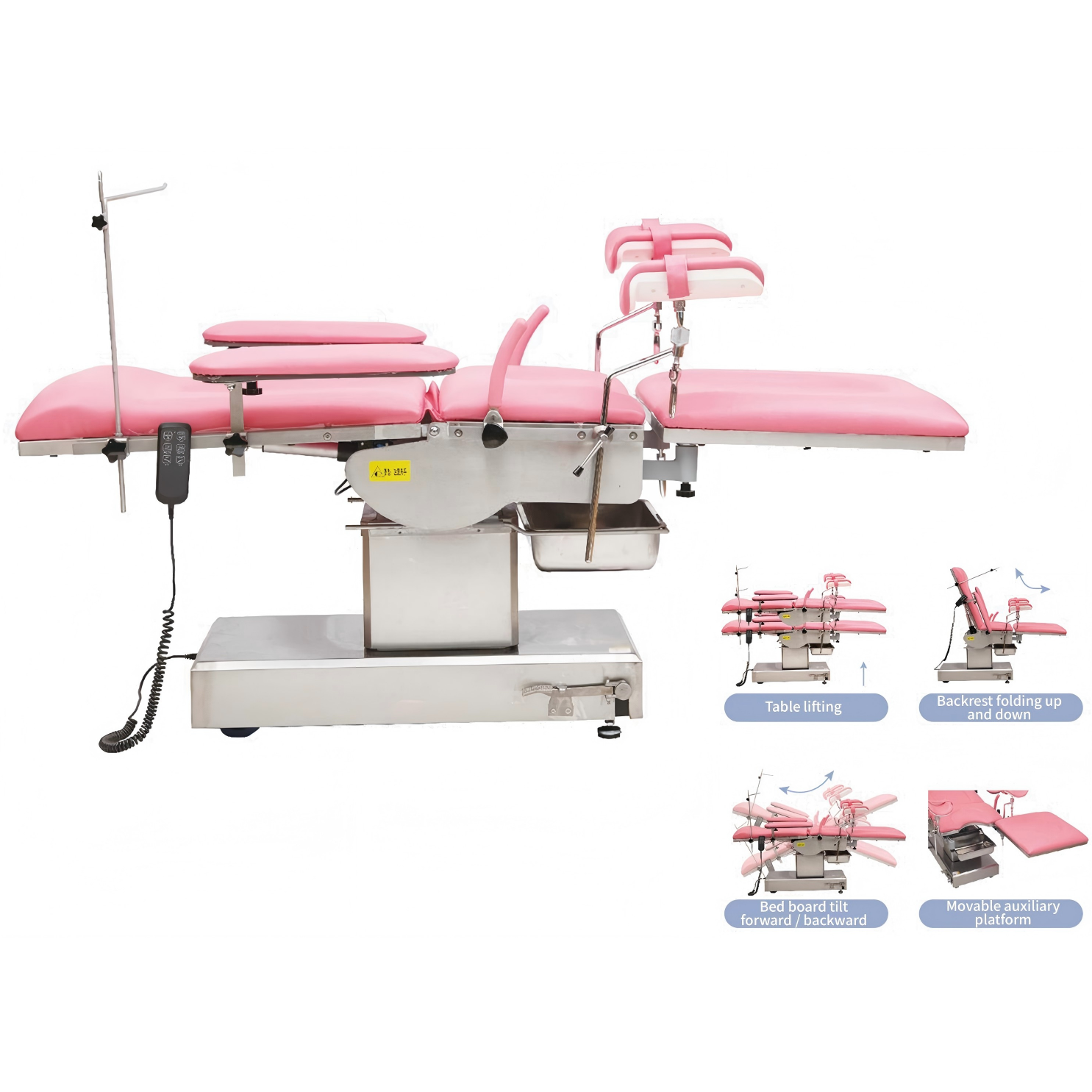 The electric lateral-folding gynecological operating table is manufactured based on market demand, attracting and incorporating the foreign advanced technologies. The table outline design follows human body functionality, aesthetically pleasing and novel; it is a multifunctional obstetric and gynecological operating table suitable for examinations, diagnosis, delivery and emergency cesarean section operations,
